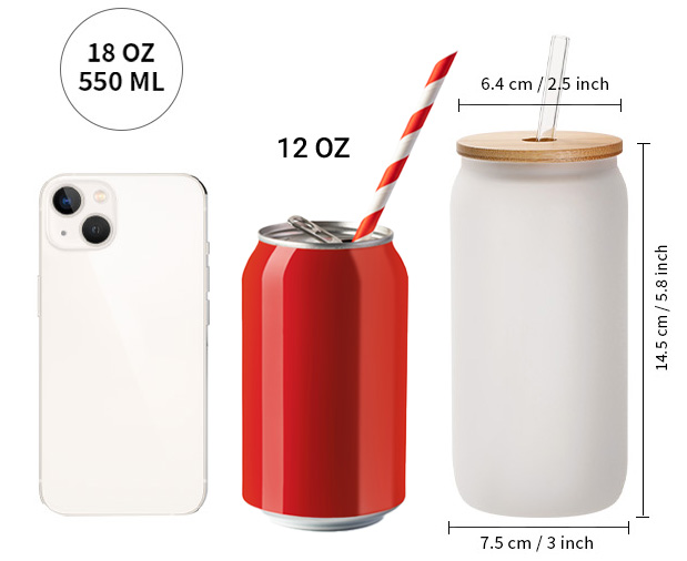 - Glass can is 18 oz 550 ml, with individual white box