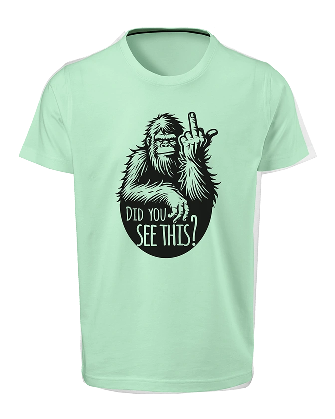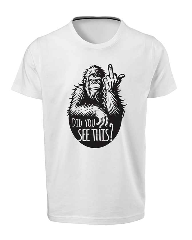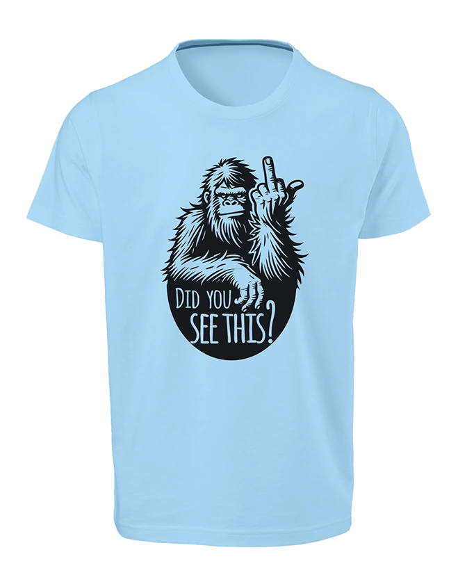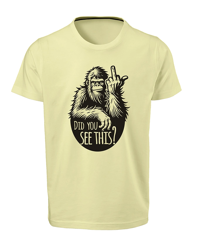 Spot the sassy Sasquatch flipping the bird in our “Did You See This?” design! This design packs a punch of humorous irreverence with a cheeky Bigfoot design—ideal for rebels, or anyone who loves a bold laugh. Soft, comfy, and conversation-starting!